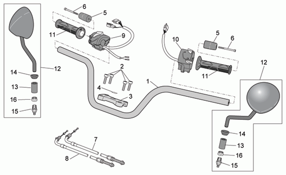 STANDARD Rhandlebar, ETV 1000 Capo Nord 2001-2003, 1000 cc, Aprilia-varaosa luettelot