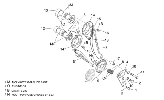 Etusylinterin jakoketju, nokka-akselit, ETV 1000 Capo Nord 2004-2007, 1000 cc, Aprilia-varaosa luettelot