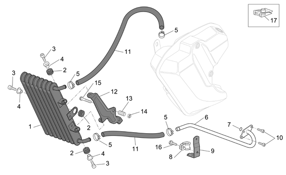 Öljyn lauhdutin, ETV 1000 Capo Nord 2004-2007, 1000 cc, Aprilia-varaosa luettelot