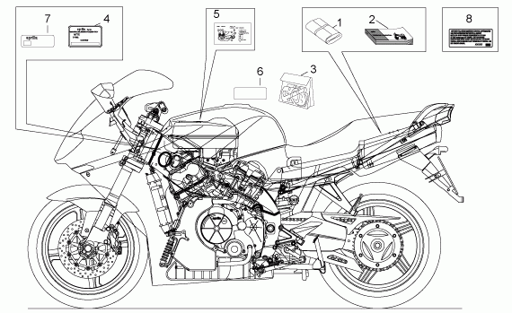 Tietokilpi, tarrat, käyttöohjekirjat, RST 1000 Futura 2001-2003, 1000 cc, Aprilia-varaosa luettelot