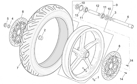 Etupyörä, RSV 1000 1998-1999, 1000 cc, Aprilia-varaosa luettelot