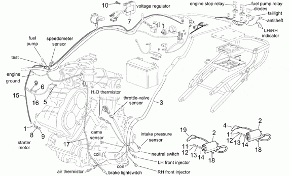 Keskimmäinen sähköjärjestelmä, RSV 1000 1998-1999, 1000 cc, Aprilia-varaosa luettelot