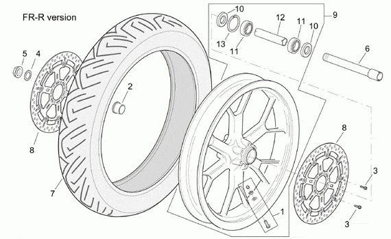 R-RF versio etupyörä, RSV 1000 Tuono 2002-2005, 1000 cc, Aprilia-varaosa luettelot