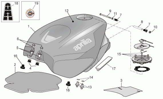 Polttoainetankki, RSV 1000 Tuono 2006-2009, 1000 cc, Aprilia-varaosa luettelot