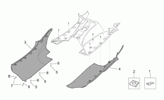 Keskiosa, sivukatteet, Leonardo 125-150 1999-2001, 125-300 cc Scootterit, Aprilia-varaosa luettelot