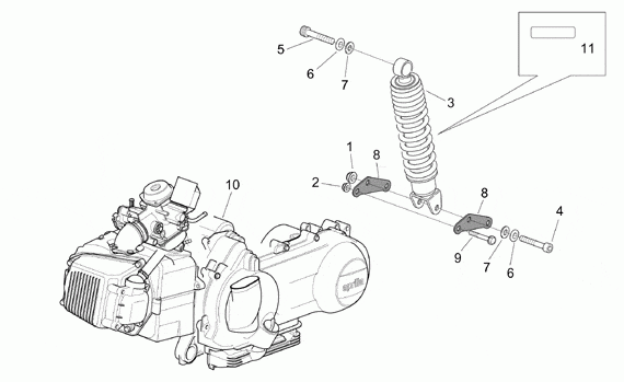 Moottori, takajousitus, käynn.poljin M, Mojito 125-150 2003-2007, 125-300 cc Scootterit, Aprilia-varaosa luettelot