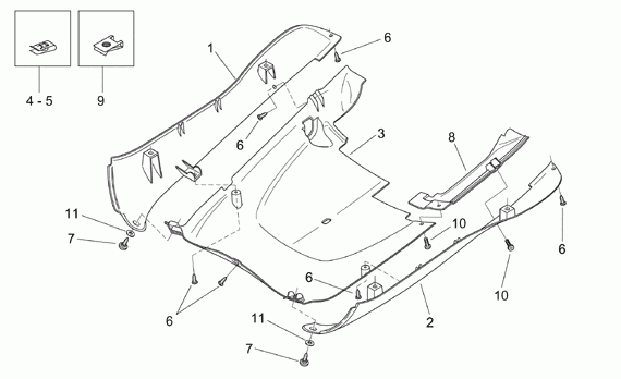 Keskiosa, alakate, Mojito 125 1999-2001, 125-300 cc Scootterit, Aprilia-varaosa luettelot
