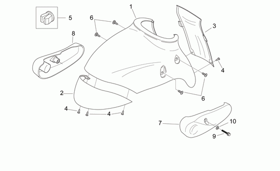 Etuosa, etulokasuoja, Mojito 125 E3 2008, 125-300 cc Scootterit, Aprilia-varaosa luettelot