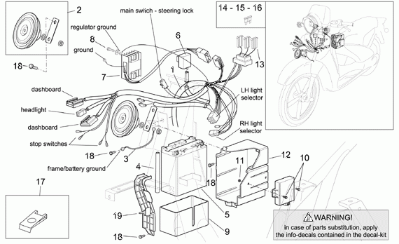 Johtosarja, sähköosia I, Scarabeo 125-150-200 (eng.Rotax) 99-04, 125-300 cc Scootterit, Aprilia-varaosa luettelot