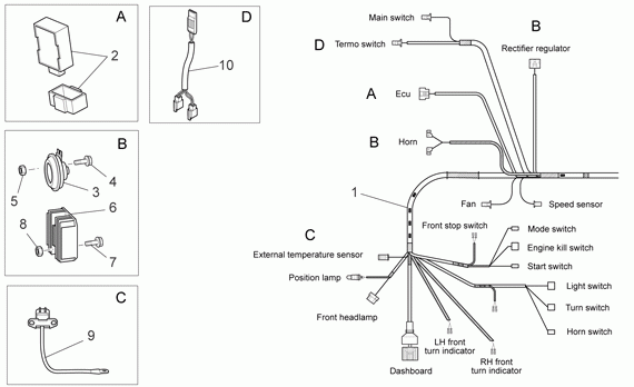 Johtosarja, sähköosia I, Scarabeo 125-200 Light 2007-2008, 125-300 cc Scootterit, Aprilia-varaosa luettelot