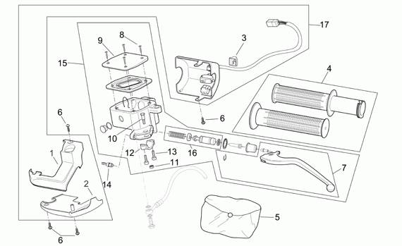 Hallintalaitteet Vasen, Scarabeo 125-250 E2 (eng.Piaggio) 04-06, 125-300 cc Scootterit, Aprilia-varaosa luettelot