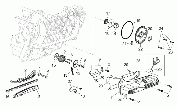 Öljypumppu, Scarabeo 125-250 E2 (eng.Piaggio) 04-06, 125-300 cc Scootterit, Aprilia-varaosa luettelot