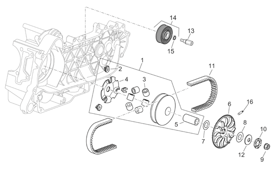 Variator assembly, Scarabeo 250 Light E3 2006-2008, 125-300 cc Scootterit, Aprilia-varaosa luettelot