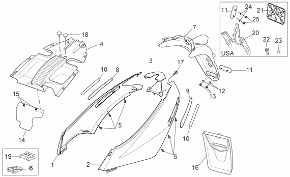 Takaosa II, Sport City 125-200-250 E3 2006-2008, 125-300 cc Scootterit, Aprilia-varaosa luettelot