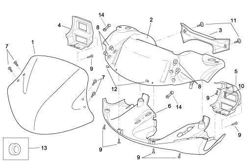 Etuosa, etukate, SR 125-150 1999-2001, 125-300 cc Scootterit, Aprilia-varaosa luettelot