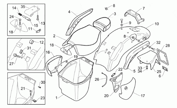 Takaosa, Classic 125 1995-1999, 125 cc, Aprilia-varaosa luettelot