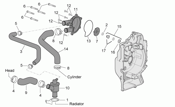 Vesipumppu, Scarabeo 500 2003-2006, 400-500 cc Scootterit, Aprilia-varaosa luettelot