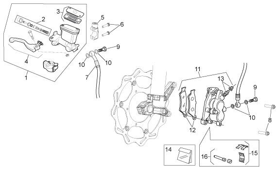 Front brake system, MXV 450 Cross 2008, 450-550 cc Off-road, Aprilia-varaosa luettelot