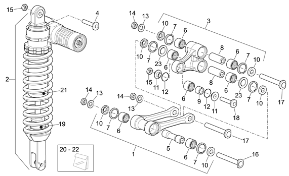 Takaiskunvaimennin, linkut, SXV 450-550 2009, 450-550 cc Off-road, Aprilia-varaosa luettelot