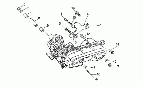 Moottorin kiinitys, A601 Quasar 50-100 2003, 50-180 cc Nelipyörät, Aprilia-varaosa luettelot
