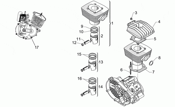 Sylinteri, kansi, mäntä, Mini RX Challenge 2003, 50 cc Scootterit, Aprilia-varaosa luettelot