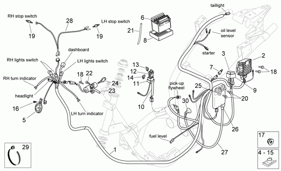 Johtosarja, sähköosia, Mojito 50 2T (Piaggio moottori) 04-10, 50 cc Scootterit, Aprilia-varaosa luettelot