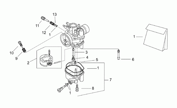 Kaasutin II, Rally 50 H2O 1996-1999, 50 cc Scootterit, Aprilia-varaosa luettelot
