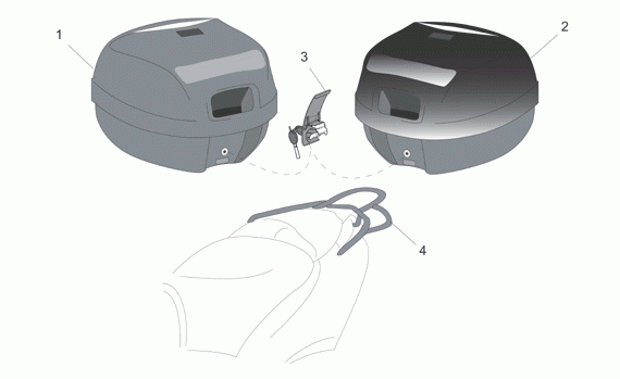 Perä- ja sivulaukut, SR 50 (Ruisku+Kaasutin) 04-10 ZD4VFD, ZD4VFB, 50 cc Scootterit, Aprilia-varaosa luettelot