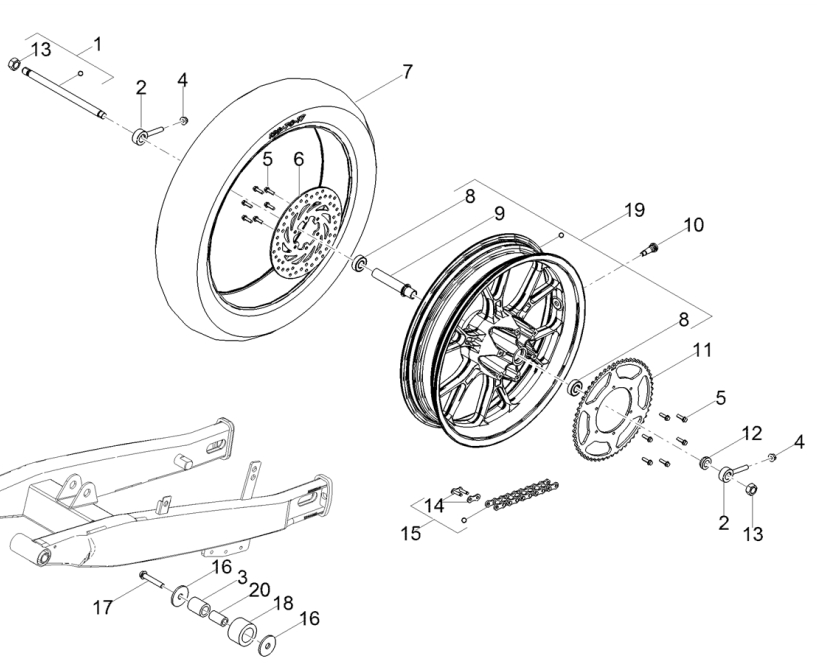 44-Takapyörä SX, SX-50 RX-50 2018, 50 cc Vaihteelliset mallit, Aprilia-varaosa luettelot