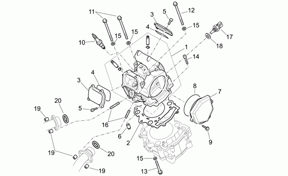 Sylinterin kansi, Pegaso Strada-Trail 650 IE 2005-2007, 650 cc, Aprilia-varaosa luettelot