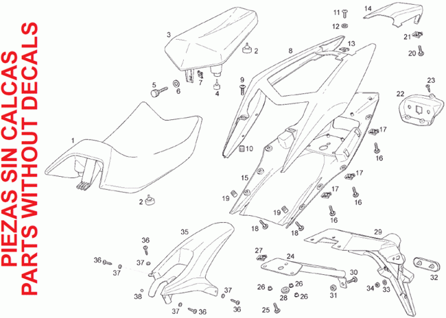 28-Istuin, takakate, GPR 125 4 tahtinen, 125 cc, Derbi-varaosa luettelot