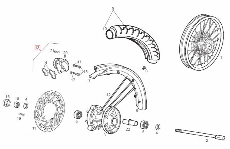 22-Etupyörä, SM DRD RACING 2005-2010, 50 cc Super Moto mallisto, Derbi-varaosa luettelot