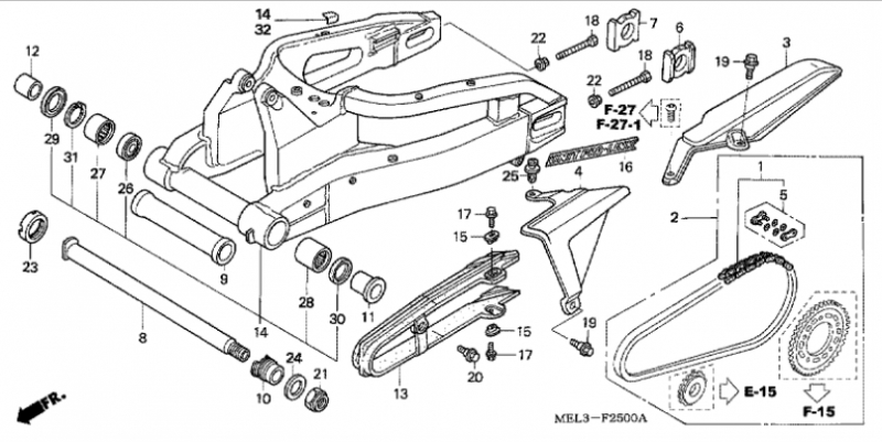 F25-Takahaarukka, CBR 1000 RR6 2006, 1000 cc, Honda-varaosa luettelot