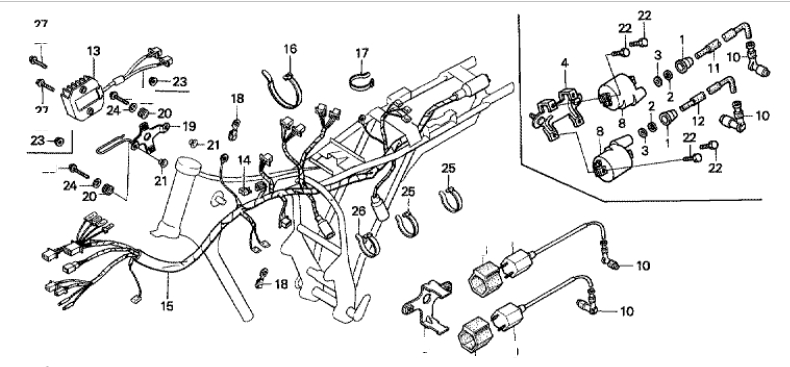 F27-Johtosarja, CB 125 TDE TWIN 1984, 125 cc, Honda-varaosa luettelot