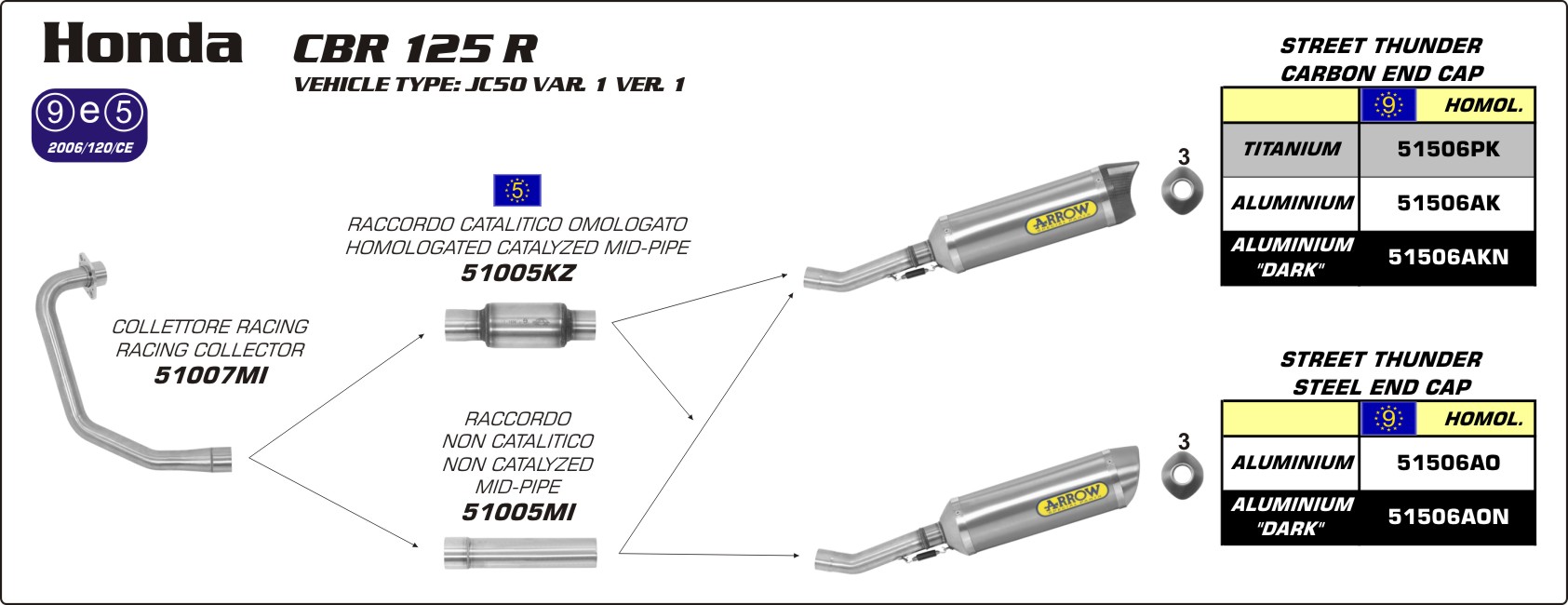 A3-Arrow pakoputkisto 2011-2015, CBR 125 RWB 2011, 125 cc, Honda-varaosa luettelot