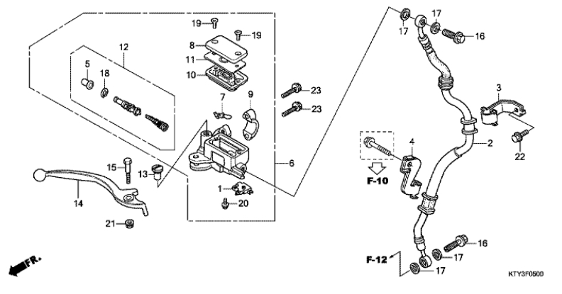 F5-Etujarrun sylinteri, CBR 125 RWB 2011, 125 cc, Honda-varaosa luettelot