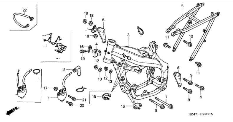 F22-Runko, CR 125 R3 2003 Cross, 125 cc, Honda-varaosa luettelot