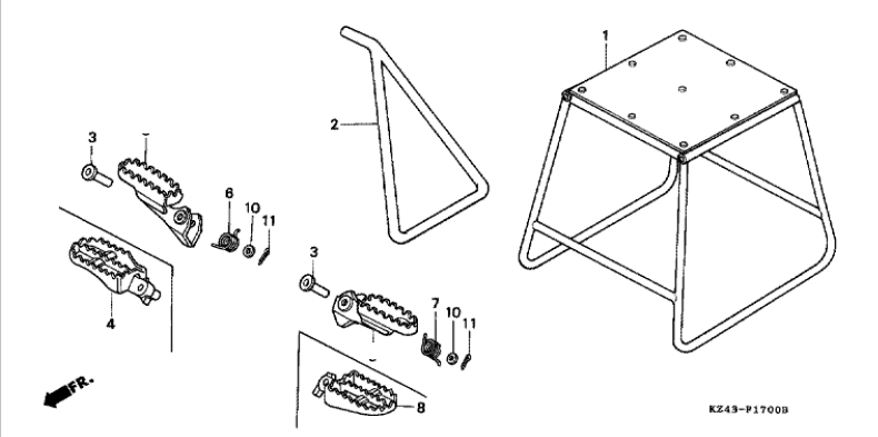 F17-Jalkatapit, CR 125 RS 1995, 125 cc, Honda-varaosa luettelot