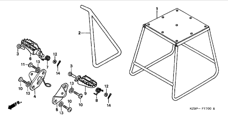 F17-Jalkatapit, CR250R X 1999, 250 cc, Honda-varaosa luettelot