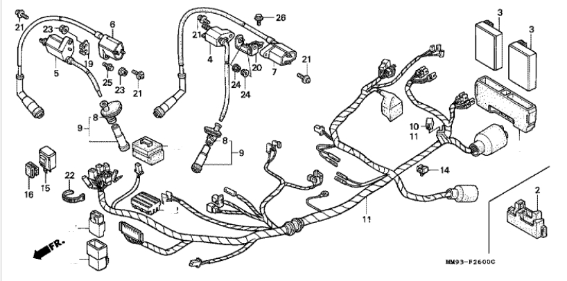 F26-Johtosarja, sähköt, XL 600 VR TRANSALP 1994, 600cc, Honda-varaosa luettelot