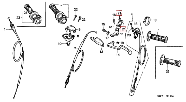F1-Kahvat, vaijerit, CR 80R 2002, 80 cc, Honda-varaosa luettelot