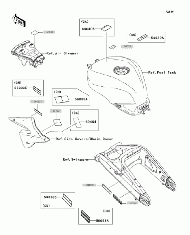 G10-Tarrat, NINJA ZX-10R ZX1000 2004, 1000 cc, Kawasaki-varaosa luettelot