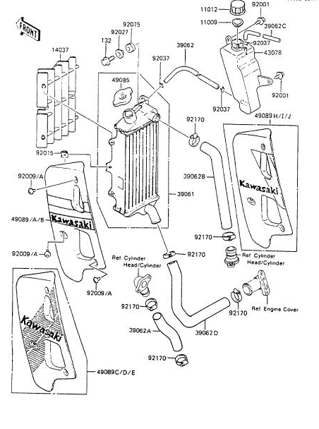 16-Jäähdytin, KMX 125, 125 cc, Kawasaki-varaosa luettelot