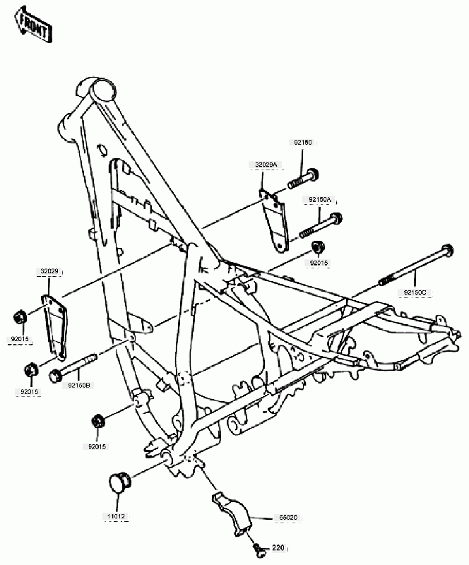 18-Rungon kiinikkeet, KMX 125, 125 cc, Kawasaki-varaosa luettelot