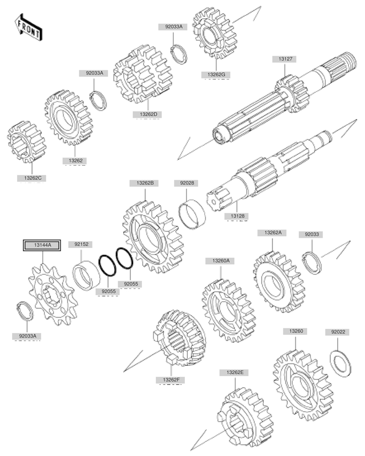 GEAR,OUTPUT 4TH,22T KX125-M2