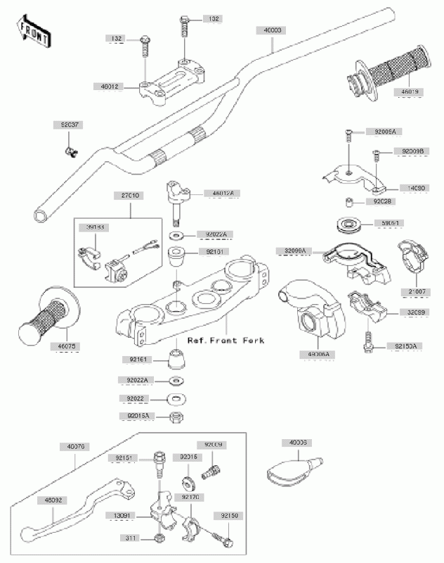32-Ohjaintanko, kahvat, KX 125 M3 2005, 125 cc, Kawasaki-varaosa luettelot