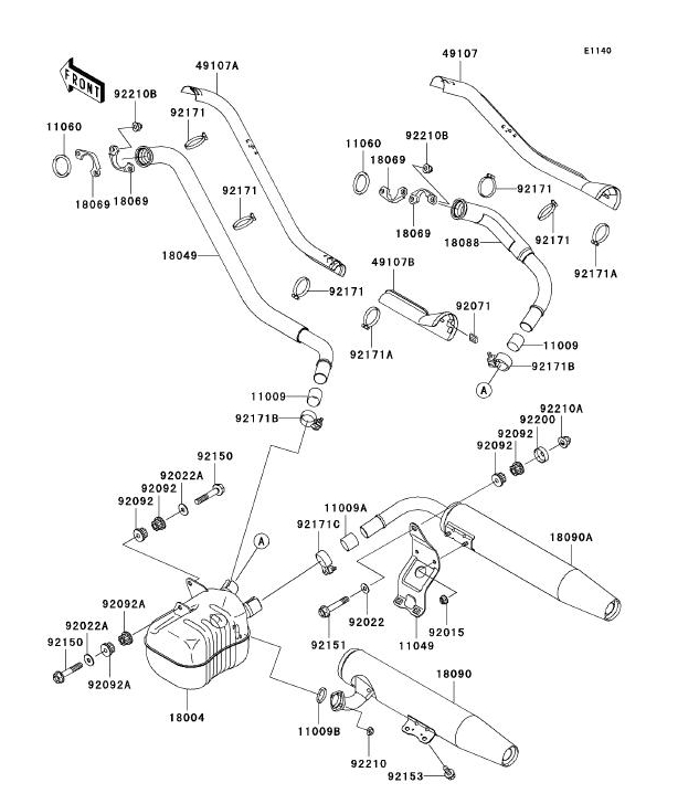 B8-Pakoputkisto, VN 1500 CLASSIC 2006, 1500 cc, Kawasaki-varaosa luettelot