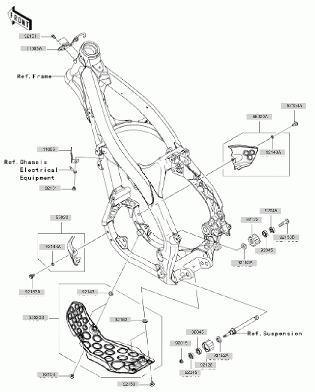 24-Rungon osia, panssari, KX F250 2010, 250 cc, Kawasaki-varaosa luettelot