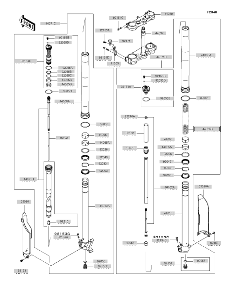 E10-Etujousitus, KX F250 2011/12 , 250 cc, Kawasaki-varaosa luettelot