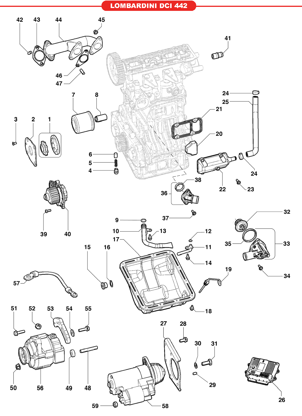 24-Moottorin osat DCI 442, M-8 2012, MicroCar mallikoht. osat, Microcar-varaosa luettelot